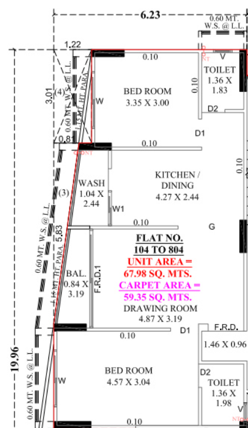 Carpet Area1 sq M = 10.76 sq ft