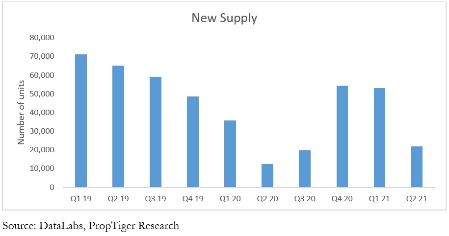 In percentage terms, housing sales declined 79% annually while falling 73% QoQ. Similarly, new supply dipped 81% annually while falling 65% QoQ.