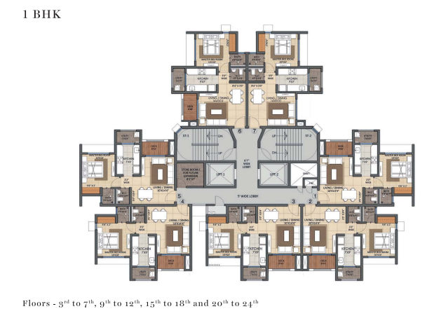 Carpet Area1 sq M = 10.76 sq ft