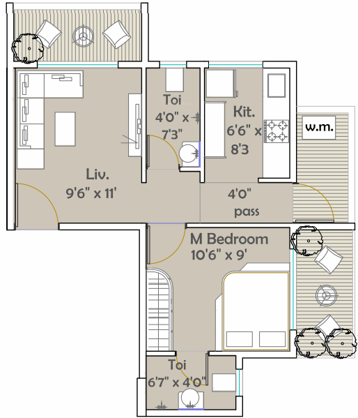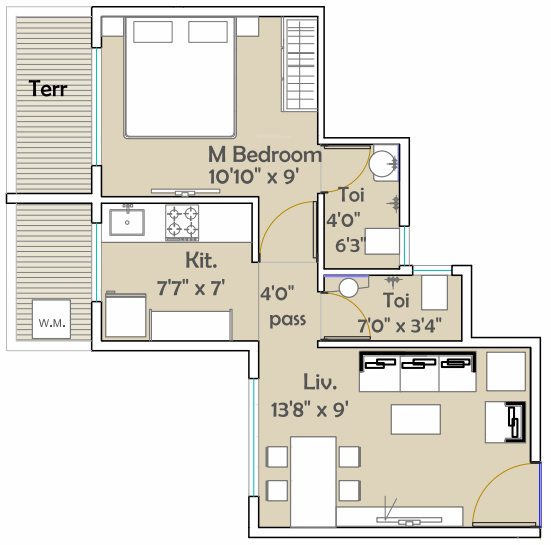 Carpet Area1 sq M = 10.76 sq ft